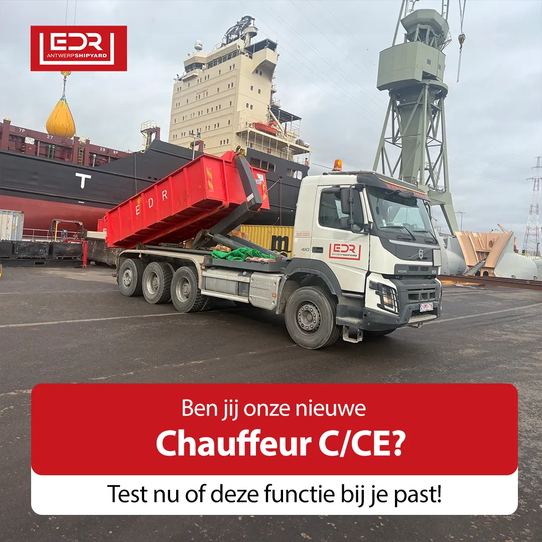 EDR Antwerp Shipyard is de grootste scheepswerf van België, gespecialiseerd in scheepsonderhoud, reparatie, rompbehandeling en scheepsbouw. Onze werf bruist van activiteit — van kleine vissersschepen tot imposante cargovaartuigen. Als Chauffeur C/CE speel jij een sleutelrol in het vlot laten verlopen van alle interne en externe transporten.